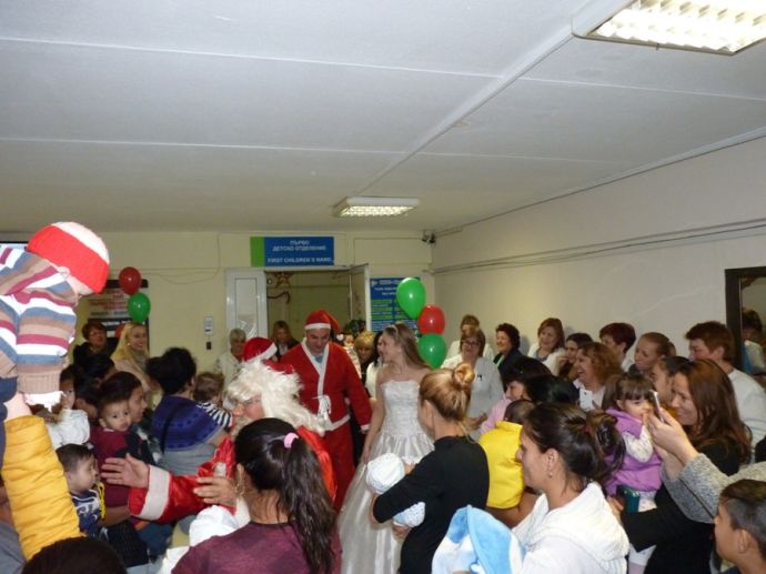 Тази година дружината на Дядо Коледа бе най-голяма. Снежанка и едно от джуджетата бяха изиграни от стажанти, провеждащи държавен стаж в Отделението по неврология, а втората помощничка на Дядо Коледа бе медицинска сестра от Хирургично отделение. В Добрия старец по традиция се превъплъти обичаният актьор Стоян Памуков. Тържеството завърши с раздаване на десетки подаръци, а над 30-те деца пяха, танцуваха и се забавляваха от сърце заедно с талантливите солистки Александра Иванова, Василена Илчева и Жаклин Костадинова.