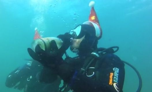 Дядо Коледа сложи маска и шнорхел, а Снежанка обу плавници. В ролята на водолази влязоха и техните помощници – джуджетата.