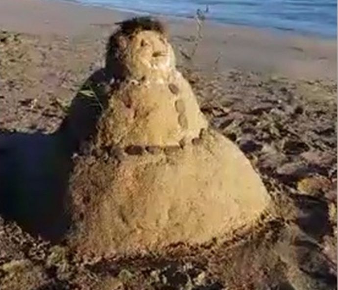 В Приморско пък местни жители се забавляваха, правейки „снежен“ човек от пясък. И въпреки, че не е типичният Снежко, фигурата му предизвика много приятни емоции у деца и техните родители. Пясъчният Снежко се пъчи гордо на плажната ивица край гладкото море на плаж „Перла“, до бившата резиденция.