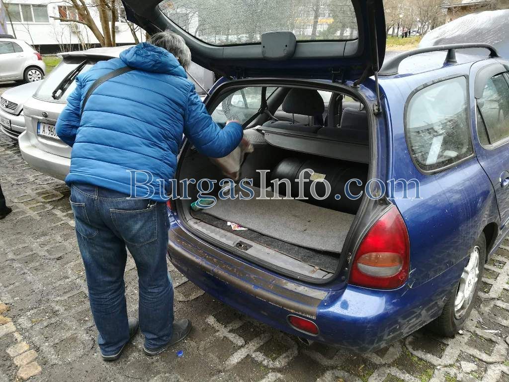 Собственикът на единия от изгорелите автомобили пред вход 2 на бл. 1 в бургаския ж.к. „Славейков” – Константин, показа бутилка с метан, която държи в багажника на лекия си автомобил „Хюндай”.
