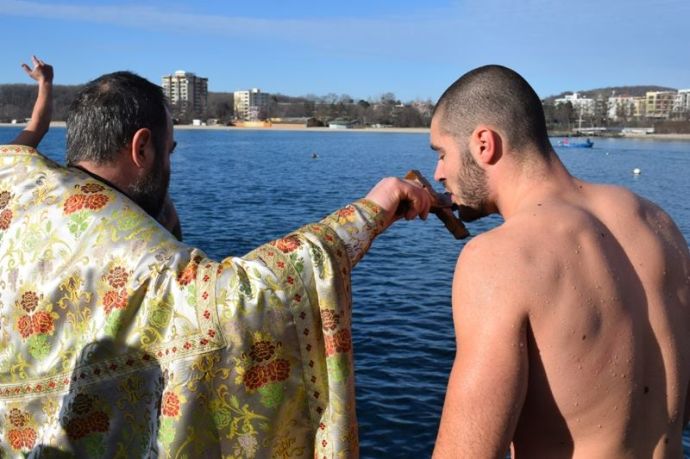 Първо извадиха кръста от морето на пристанището в Приморско, където се бяха събрали жители и гости на града, желаещи да станат част от атрактивния християнски празник девет куражлии се хвърлиха в студените води на Черно море. Най-бърз се оказа 20 годишният Никола Бинев от Китен, който пръв стигна до символа на Йордановден.