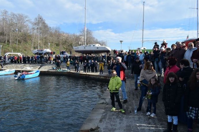 Преди това в църквата „Св. св. Кирил и Методий” отец Гавраил отслужи света литургия и велик водосвет, а литийното шествие поведе множеството от хора към пристанището, където бе „спасен“ кръста.