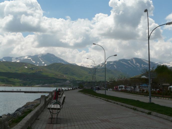На следващият ден разгледох градчето, запознах се с много хора, изпих n-количество чай, поразпитах какво трябва да видя непременно. Местните ми казаха, че трябва да се кача на Немруд гьолу, който се намира в кратера на загасналия вулкан Немруд. Тръгнах по пътя и изведнъж ДУР-бариера, пътят затворен от лавина и е непроходим, кофти. Върнах се в града и се разходих по крайбрежната алея. Междувременно се върнах в хотела и ме преместиха в голяма стая с прозорец, най после ще съхна.