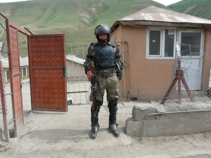 На едно зверски охранявано кръстовище се отделих за иранската граница и навлязох в един каньон, където имаше събор на всичките насекоми в района, за 10минути слюдата ми почерня. След 20-тина километъра бях на границата. Няколко проверки, докато стигна до митницата, от там едно хлапе ме подхвана и ме прекара през всички гишета набързо дадох му всичките си останали турски монети. Но на портала се оказа, че от иранска страна има почивка един час, време за снимки на граничарите.
