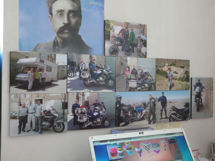 Междувременно всички ми говореха и ми показваха снимки на един аржентинец на име Клиданор (виж ТУК), с който впоследствие в Есфахан се запознахме. Той също отседнал в Хосеин, оставил им много снимки и клипове. Обикаля света с Дукати Мултистрада. Личен приятел на Валентино Роси.