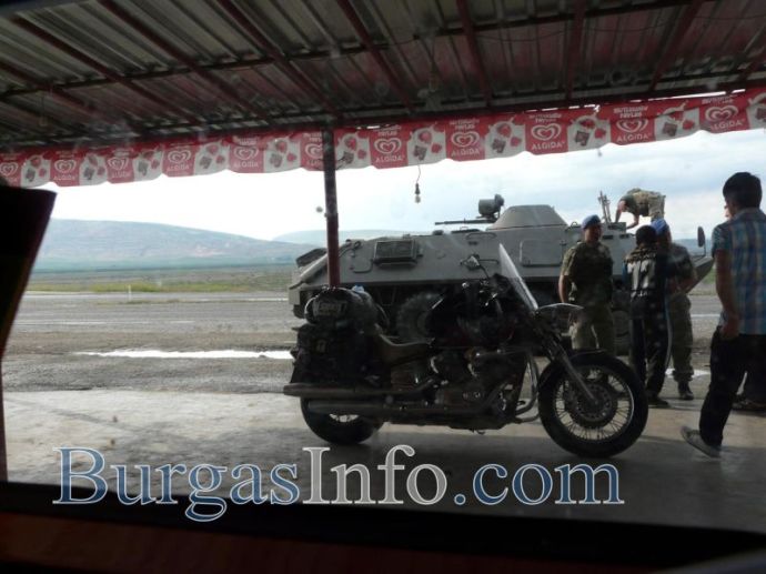 На следващия ден точката беше Малатия, 880 км. Тръгнахме към 8.00 ч.Времето беше идеално, след Анкара излязохме от магистралата и започнаха ремонтите по пътя. Няколко дълги участъци карахме по черно, времето взе да се разваля, но бяхме добре. Във Кайзери вече небето се отвори и заваля порой. Скрихме се в една бензиностанция и почакахме да намалее. Задължително комшиите изкараха чая и така един час. Тръгнахме и след около 20 км.след Каизери нямаше и капка паднала. Навлязохме в каньон, завои, ремонти, черно по 5-6км. На 40км. преди Малатия режеха скалите около пътя (последствие видях) на прав хубав, асфалтиран път, нагорнище, Васко беше пред мен на 20м. със скорост около 100км.ч. и в един момент го видях да се олюлява и да скача от мотора. Докато го гледах се озовах и аз на асфалта суркайки се от едната и от другата страна без да се отделя от мотора и така около 40м. Наискочиха работници и местни, помогнаха ми да сляза от мотора и гледам, около Васката - 15 човека. Крещят, отивам, той лежи. Василе, ставай бе, той ми отговаря, че не му дават. Боли ли те нещо – не. Ставай тогава. Докато се суети, ме пита мотора как е. Не знам как да му го кажа - не става. Беше се забил в скалите отсреща, грозна картинка, цялото яйце, куфари, спойлери, всичко изпотрошено. Върнах се да разбера какво точно се случи. Докато режат скалите с водоабразивна машина се отделя една слузестожелирана течност и се стекла на пътя като вада, около 80 см. Напречно. На момента видях как една кола мина оттам и поднесе здравата. Веднага излезе една фадрома и започна да чисти пътя. Разкрещях им се, но знаейки вината си, ме гледаха безмълвно. Върнах се при Васил, беше на крака, бяха дошли линейка и въоръжена до зъби жандармерия. Никой незнаеше друг език. Хванах един жандарм за ръката и го поведох да му обяснявам какво точно се е случило. Въпреки,ч е бяха го изчистили, пак бе хлъзгаво. Жандарма, видимо разбра всичко и започна да говори по телефона с някой. Аз отидох до Васил, вече видимо добре. От линейката го караха да подпише, че не иска медицинска помощ. Повечето разговори ги провеждахме по телефона с някакъв, който говореше английски. Казаха ни, че ще дойде пътна помощ да ни закара до Малатия и всички изчезнаха.