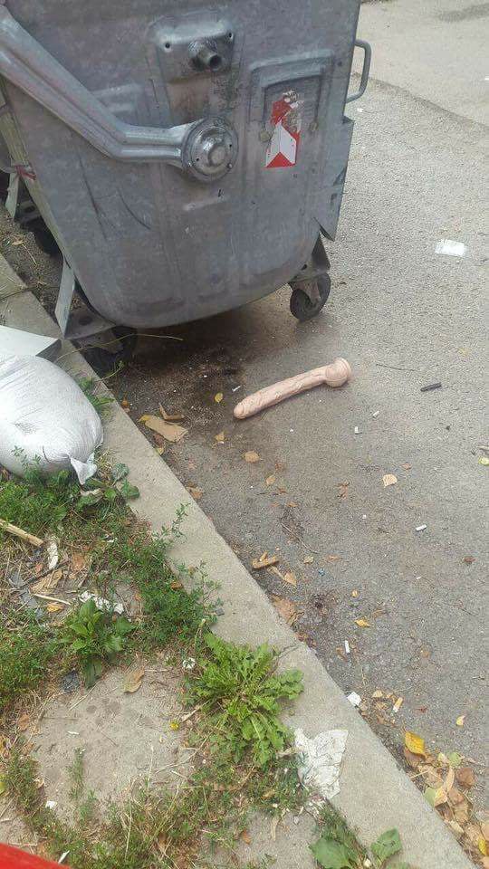 Играчката с форма на фалос е намерена тази сутрин пред блока, но не уточнява в коя част на Бургас. "Все едно някой е захвърлил голяма част от живота си без да поглежда назад".