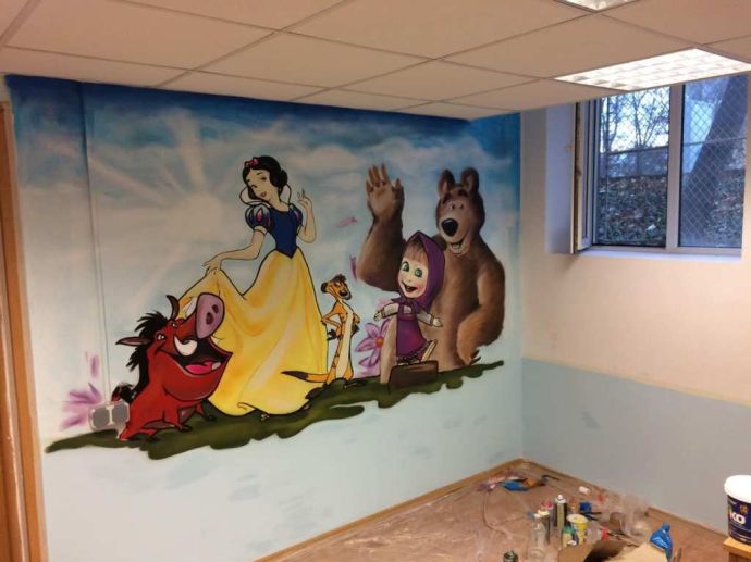 Той и негови приятели от „Ротаракт” изрисуваха на стените Снежанка и други приказни герои, които карат детските усмивки да грейнат.
