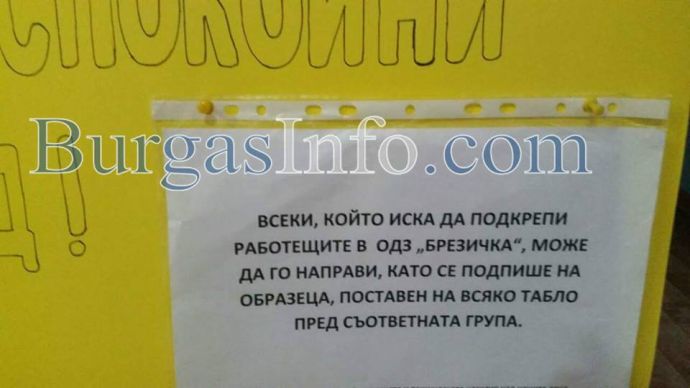 Майки подеха акция, с която да засвидетелстват подкрепата си за достойните учители в ОДЗ „Брезичка“ в Бургас след избухналия скандал с методите на възпитание в група „Мики Маус“ от страна на госпожите Милена Иванова и Светла Петрова. „Случаят се отрази на атмосферата в цялата детска градина, затова решихме да покажем на останалите учителки, че сме им благодарни и че не може всички да се слагат под общ знаменател. Искаме да успокоим атмосферата сред екипа“, каза майка на дете от друга група пред БургасИНФО. В момента в ОДЗ „Брезичка“ тече подписка в подкрепа на педагозите, които се грижат за децата с любов. На таблото е поставен плакат: „Да защитим и разграничим имената на нашите учителки, които достойно и отговорно се грижат за децата ни! Да им осигурим спокойни условия на труд!“.