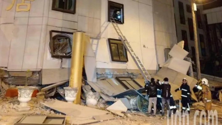 Жителите на тайванския окръг Хуален наводниха мрежата със снимки и видеа, запечатали хотел, който пострада сериозно след силното земетресение тзи вечер. По информация на местни медии, най-малко 17 души са блокирани във вътрешността на хотела. Спасители вадят хората от разрушената сграда. Информацията за броя на пострадалите се уточнява. Силен земен трус с магнитуд 6,2 по Рихтер удари бреговете на Тайван в 23.50 часа местно време. По данни на Европейско-Средиземноморския сеизмологичен център, епицентърът на труса е на 109 км. източно от град Тайчунг. /БЛИЦ/