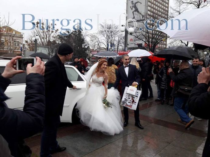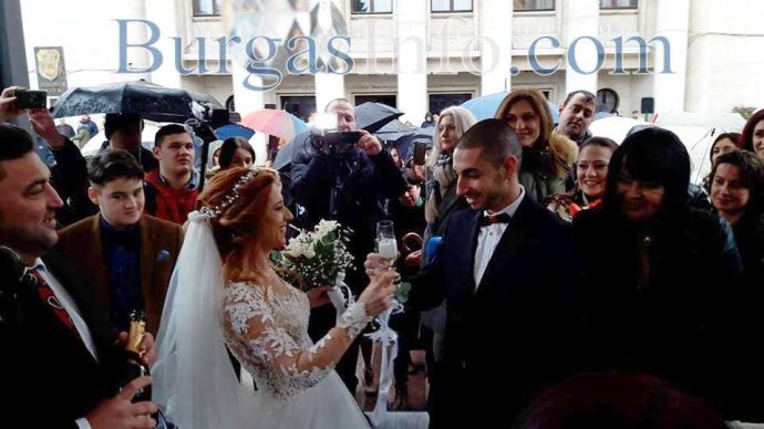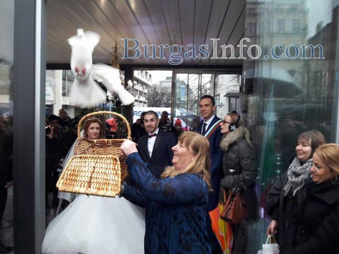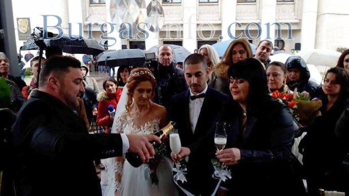 Любовта покори Бургас днес, на 14-ти февруари, когато три влюбени двойки ще си кажат взаимно „ДА“ на открито пред сградата на Общината. Лично кметът Димитър Николов бракосъчетава младоженците в уникална пергола. Лимузина докара бъдещите семействата на площада, където въпреки дъжда настроението е особено приповдигнато.