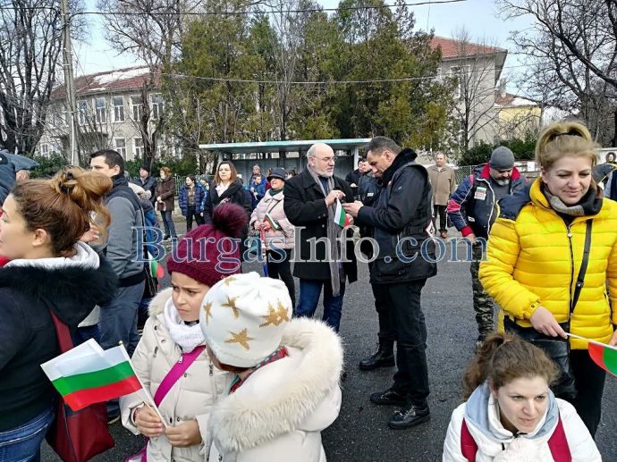 „Искам днес да поставим една традиция и това е Българовското шествие. Вижте всички тези горди българи, които са тук на площада”, каза Пламен Карашев. Сред хората беше и кметът на Българово Йордан Йорданов.