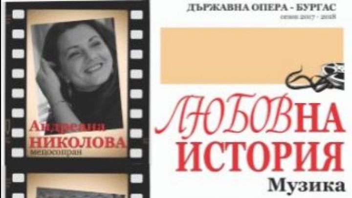 Концертът „Любовна история“, включващ песни от класическото френско кино, ще бъде изпълнен от Андреана Николова и Александър Баранов. Диригентът, под чиято палка ще свири оркестъра на Държавна опера – Бургас, е Юрий Ильинов.