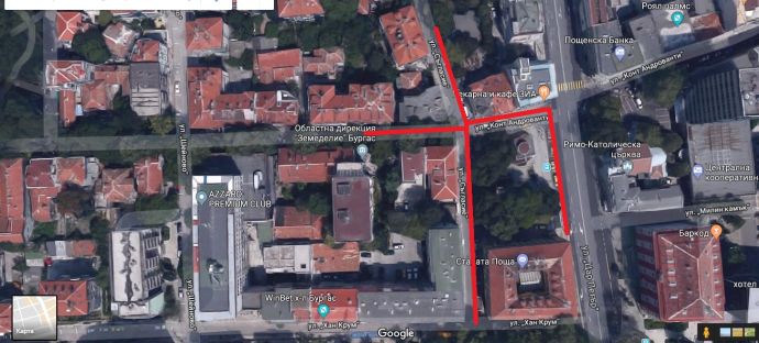 Да се монтира видеонаблюдение и на части от определени улици, които са в непосредствена близост до две от язвите. Участъците, в които според нас е нужно да се поставят камери, са отбелязани с червени линии: