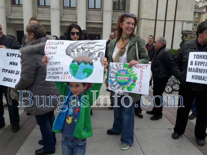 „Основото искане е правото на хората да дишат чист въздух. Второ искане е оставка на началникът на РИОСВ-Бургас Тонка Атанасова, тъй като не виждаме никакви адекватни действия и воля за установяване на огнищата, замърсяващи въздуха. Тази инстутуция не работи в интерес на гражданите“, каза един от инициаторите на днешния протест Стефан Петров.