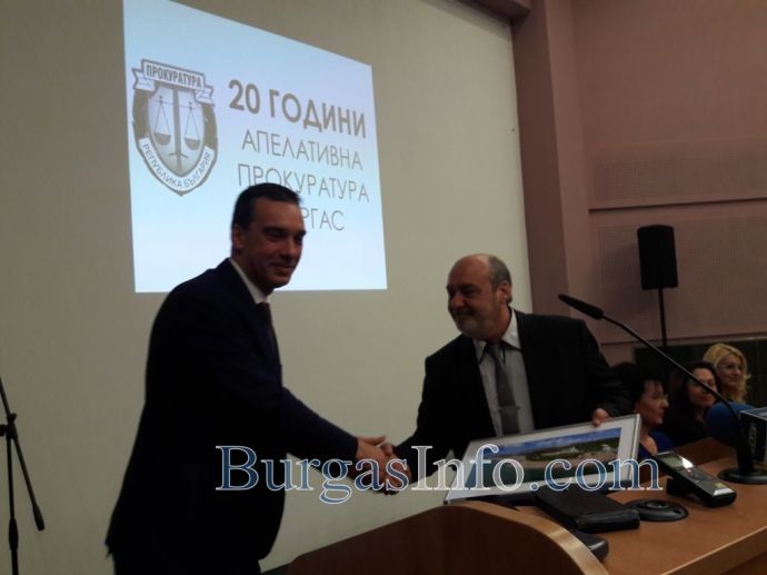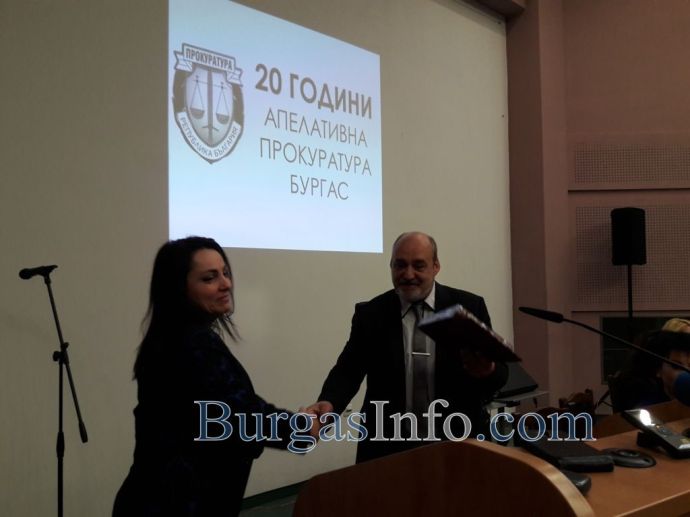 „ Сигурни сме, че за този 20-годишен период прокуратурата и Апелативна прокуратура Бургас се утвърди като един важен фактор. Хората, които са работили и работя в тази институция, са достойни, почтени, силни и достатъчно мотивирани да бъдат истинския страж срещу престъпността, истинските пазители на спрведливостта в търсенето на истината”, заяви Арнаудова. Поздрав отправи и зам.-министъра на правосъдието Десислава Ахладова. Церемонията завърши с награждаването на победителите от конкурса за есе на АП.