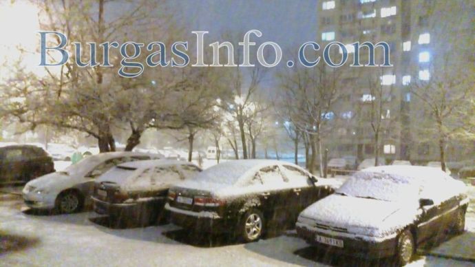 Бургас влиза в лятното часово време с нова порция сняг. Морският град за втора поредна вечер и неколкократно за този месец, ще осъмне бял. Снегът се сипе на парцали отново в момента, натрупва, въпреки че това природно явление за града е рядкост дори в характерните зимни месеци.