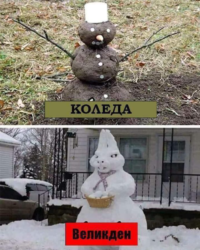Снежната пролет роди истински фолклор в социалните мрежи. „Пролетта не идва, защото чака да отслабна“, „Тихо се сипе пролетен сняг. Под снежен юрган е колата ми пак. Щъркел на двора ме гледа смутен и се надява на топло да влезе при мен“, както и още редица постове се родиха в тези объркани откъм сезонно-реална обстановка. Появиха се и снимки на плаж насред снежна покривка, както и на пясъчен човек за Коледа и на снежен – за Великден. Важното обаче е усмивките да не слизат от лицата ни!
