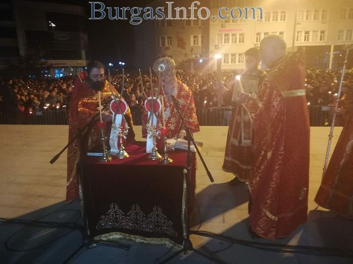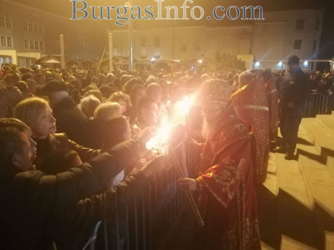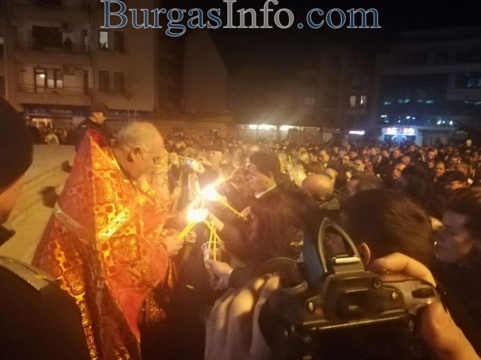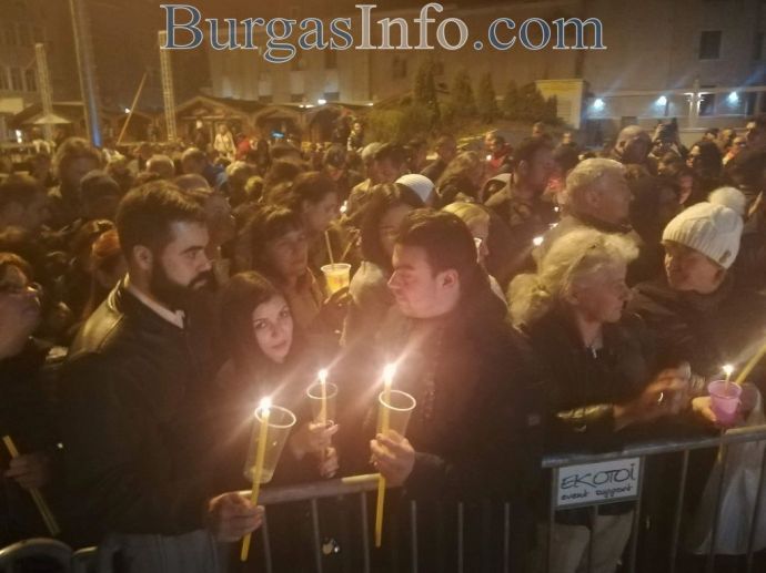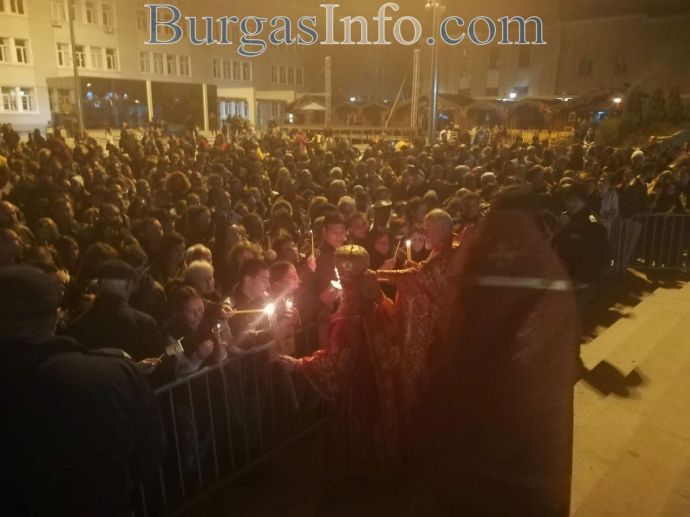 Свещичките огряха Бургас, а православните християни се поздравяваха с настъпилия Великден. Полиция и пожарна охраняваха светата литургия, отслужена във всички храмове в Бургас. Движението по улиците около храмовете беше забранено и регулирано.