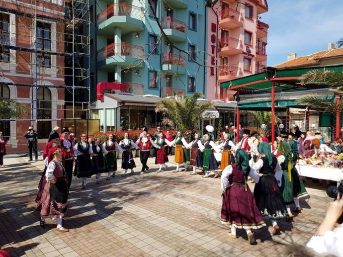 Малко по-късно програмата се пренесе на площада пред НЧ „Просвета 1888″, където кметът Иван Алексиев поздрави всички присъстващи и даде началото на колоритните „Великденски хорà“. Ръка за ръка се хванаха ТК „Чайка“ Бургас – Поморие с художествен ръководител Лиляна Христова, ДФТА „Раковина“ и ТА „Раковина“ с художествен ръководител Владимир Данаилов. За осма поредна година събитието беше организирано от ЦПЛР Общински детски комплекс – Поморие със съдействието на Община Поморие.