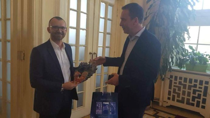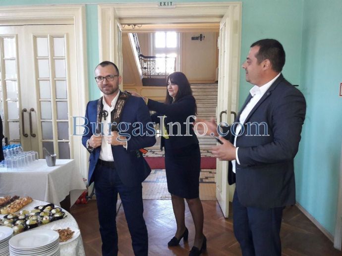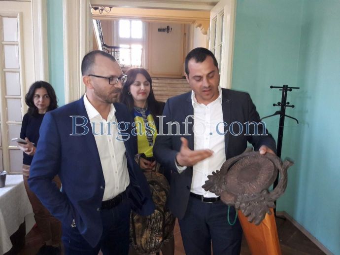 Кметът на Бургас Димитър Николов също ужави празника на областния управител. Той му поднесе арт керамика на черноморски калкан.