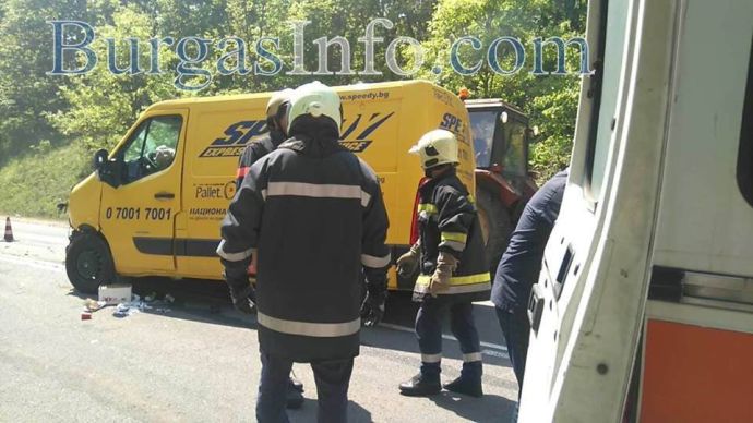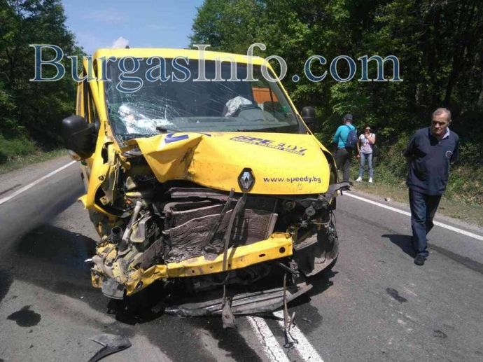 Припомняме, че жестоката катастрофа стана днес около 10,10, когато микробус на куриерската фиррма „Спиди“ влезе в насрещното и се заби челно в лека кола „АУДИ А4“.