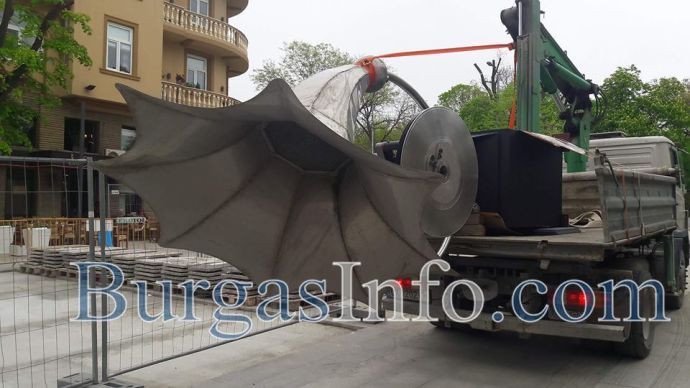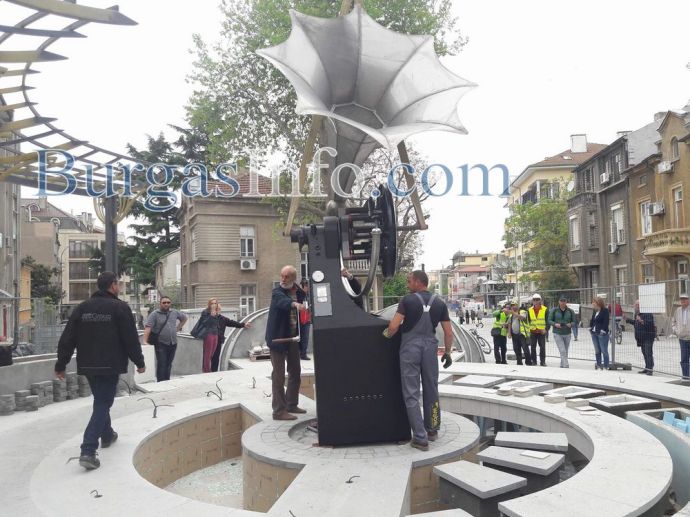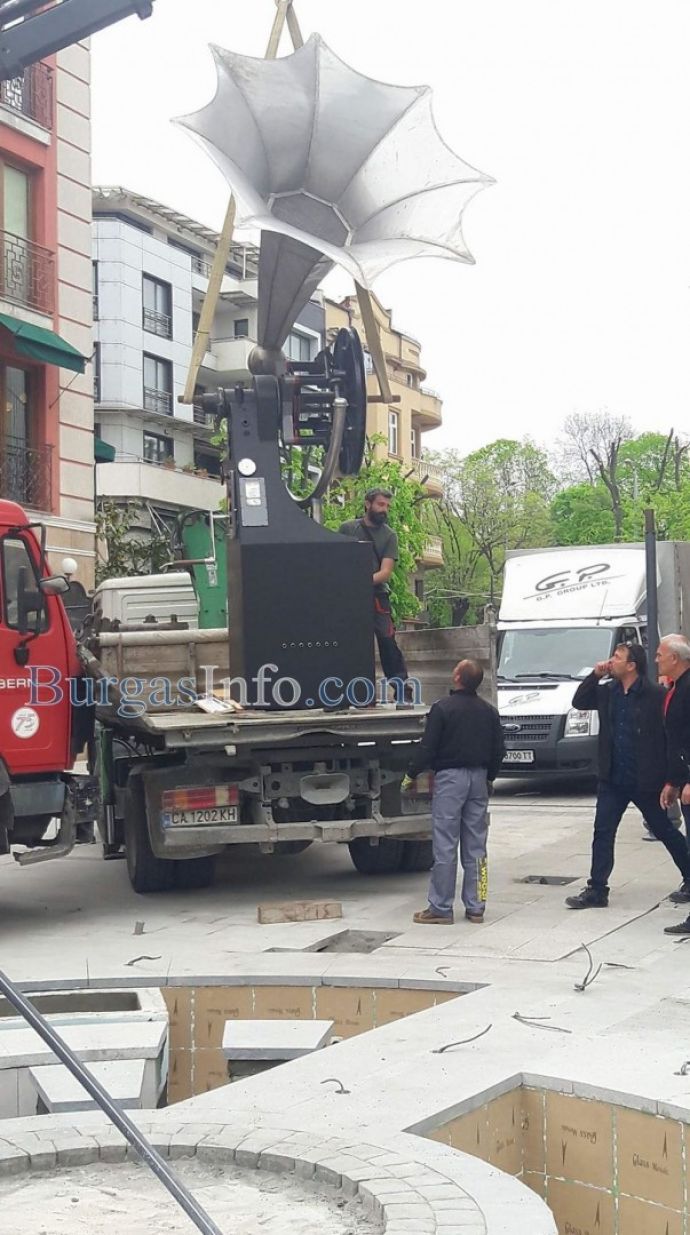 Една от емблемите на Бургас – Грамофона, се завърна днес на централната ул. „Богороди“, която в момента е в ремонт. Той беше демонтиран временно, докато се работеше усилено по преобразяването на района. Днес Грамофона беше докаран, а работниците се заловиха с поставянето му в присъствието на композитора Стефан Диомов.
