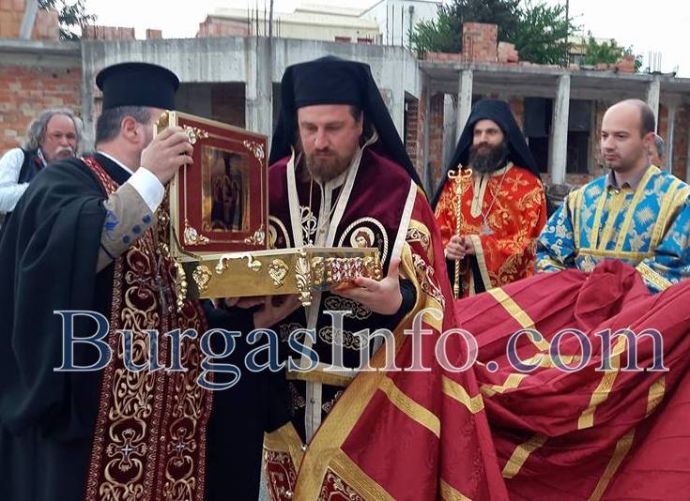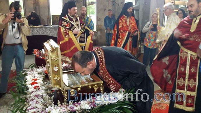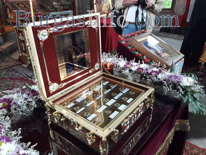 Църковното настоятелство на храм „Свети Никола“ ги посрещна по повод 10-годишнината от първата копка и полагането на основния камък през 2008 г. Те пристигнаха в Бургас с благословението на сливенският митрополит Йоаникий ще посрещне мощи на Свети Николай заедно с други 16 светии – Света Анна (майка на Света Богородица), Свети Харалампий, Свети Архидякон Стефан, Света Преподдобна мъченица Параскева, Свети Герасим Йордански и други.