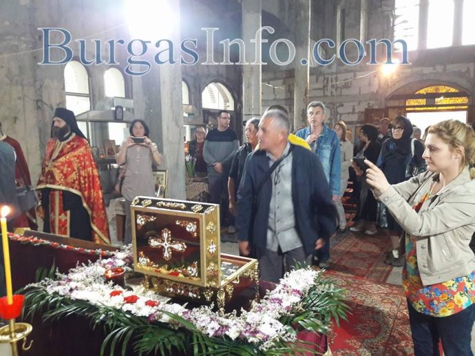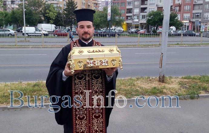 Опашка от вярващи се изви пред храм в ж.к. „Меден рудник“, за да посрещнат мощите на покровителя на Бургас – Свети Николай Чудотворец. Току-що те пристигнаха за първи път за поклонение в морския град.