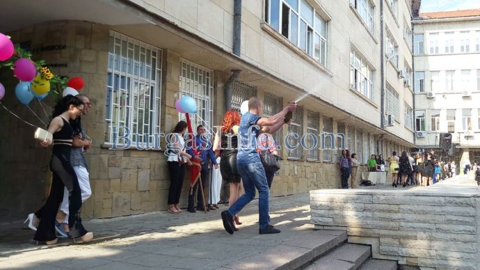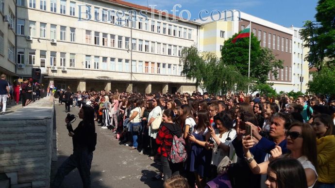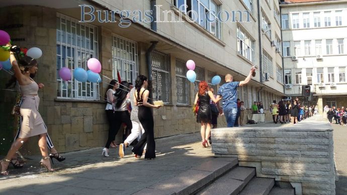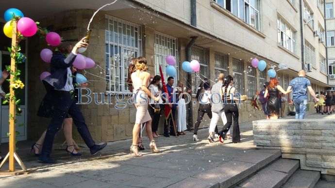 С дъжд от шампанско, конфети, балони и много усмивки Гимназията по романски езици „Георги Стойков Раковски” в Бургас изпрато своите дванадесетокласници.