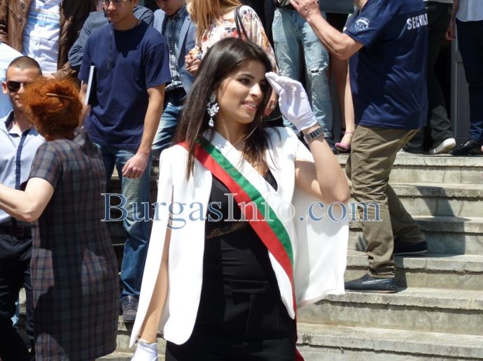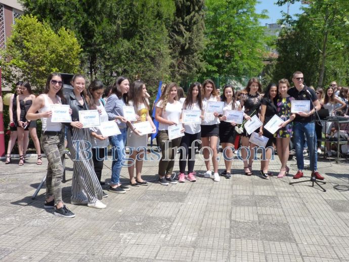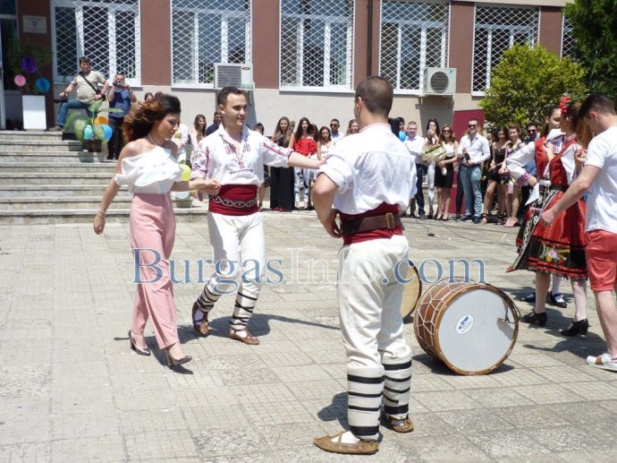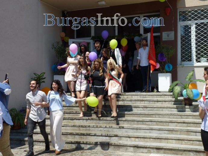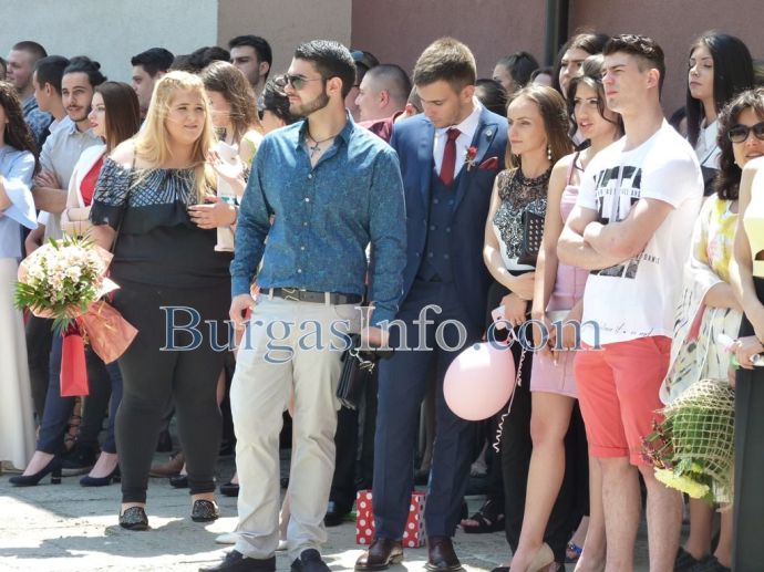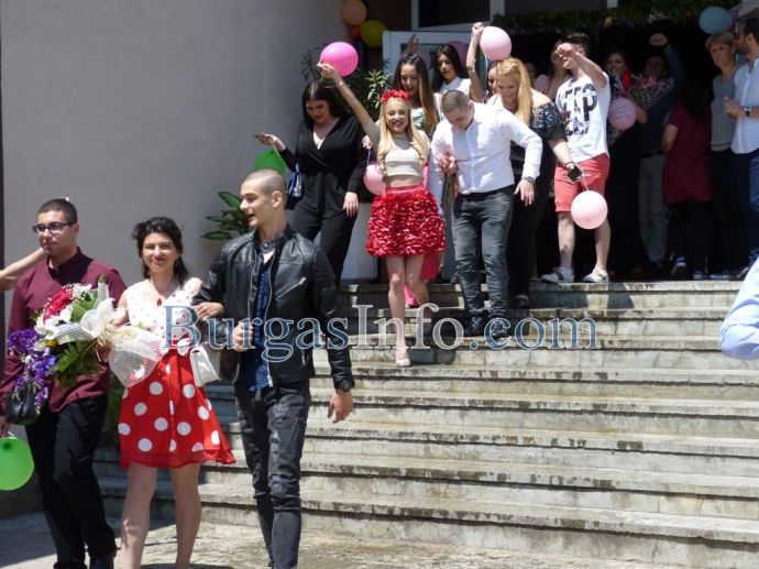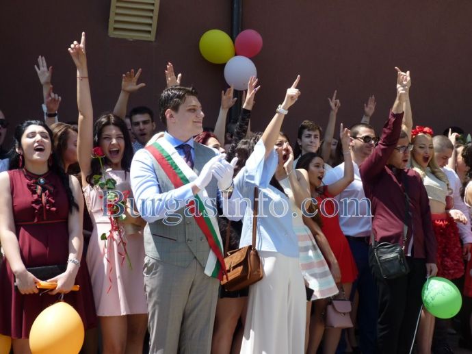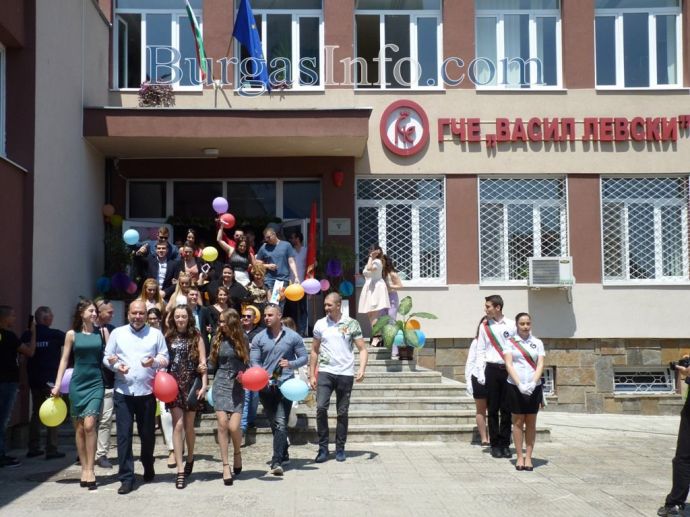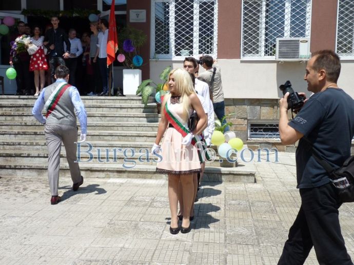 Изпращането на абитуриентите на Профилираната гимназия за чужди езици „Васил Левски” в Бургас спокойно може да засенчи всяко дефиле по червения килим в Холивуд. Кавалери на всеки от класовете на випуск 2018г. бяха техните класни ръководители. Учителите придружаваха под ръка по две момичета от 12-ти клас, а преподавателките, които бяха в компанията на своите ученици, трудно можеха да бъдат различени от абитуриентките. ![]()