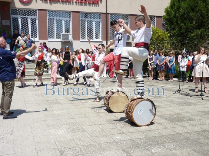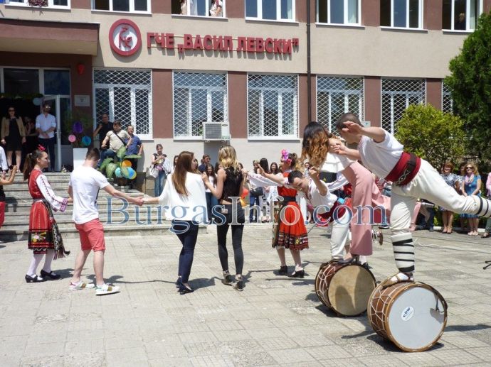 С балони, шампанско и отброяване от 1 до 12 изпращането на Руската гимназия се превърна в събитие, което зрелостниците ще запомнят за цял живот. За това много помогнаха и учениците от фолклорната група от Немската гимназия, които не само озвучиха училищния двор с тъпани и извиха хоро, но и приканиха абитуриентите да се включат в техния танц.![]()
