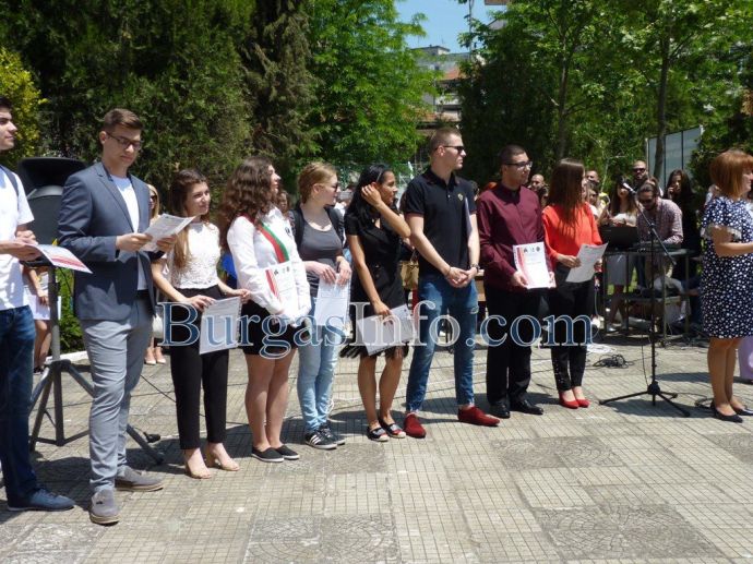 „Благодарим Ви, че запълнихме всички 137 гигабайта в компютъра ни с материали за матурите. Благодарим и на госпожата по физическо, че ни научи, че няма как да пробягаме точно 400 метра и на учителят, който винаги повтаряше: „Стани прав и излез, до края на годината няма да влизаш в моя час””, заявиха двама от зрелостниците. Думите им предизвикваха усмивки в учителите и весели възгласиха сред учениците.