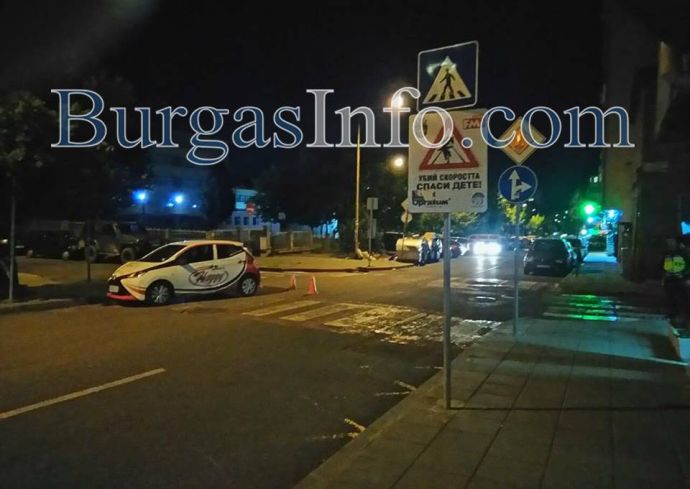Колата в момента се намира точно върху пешеходната пътека край Руската гимназия в Бургас. Водачът на колата не е на място, според свидетели, той също е в болницата.
