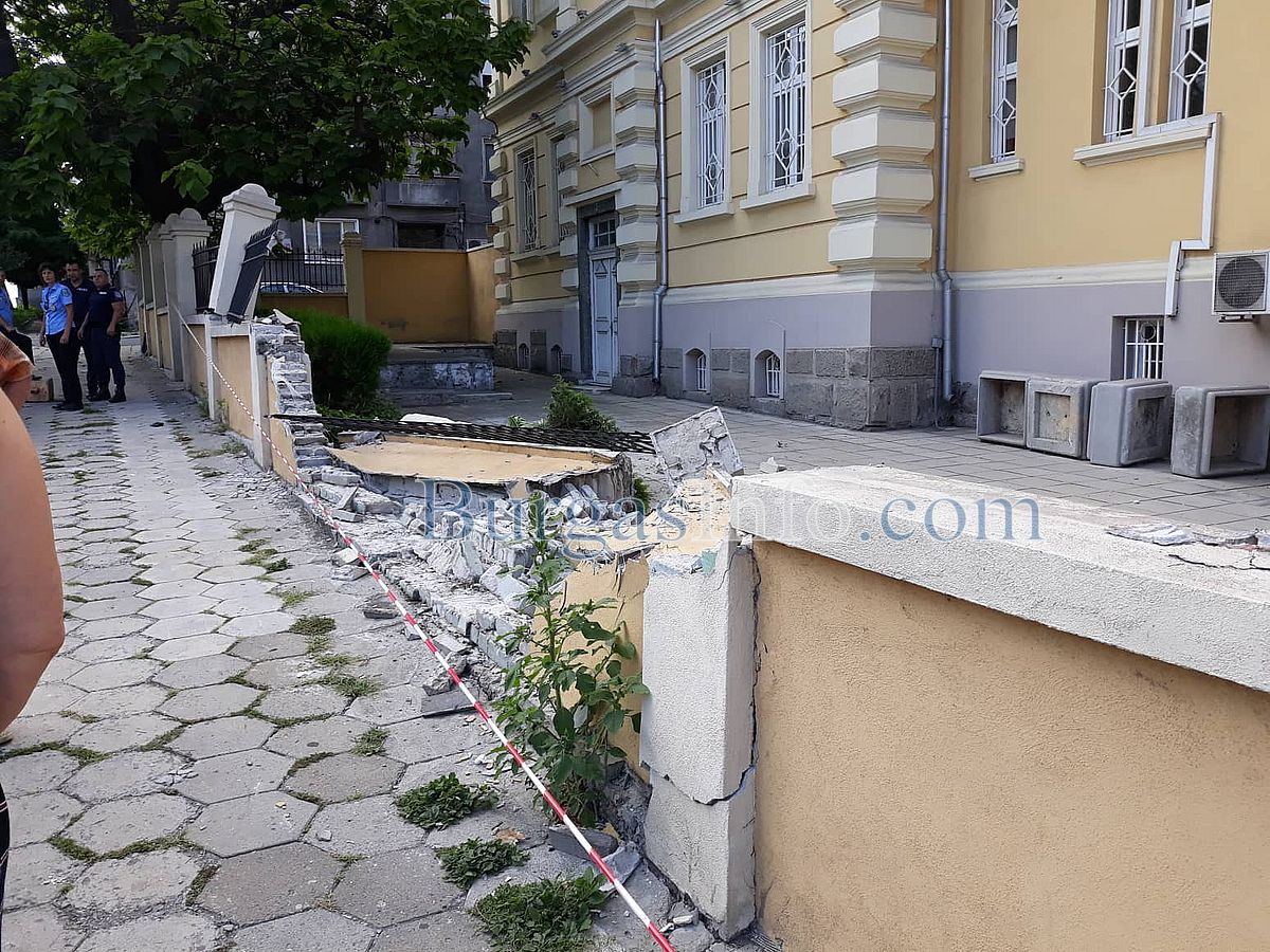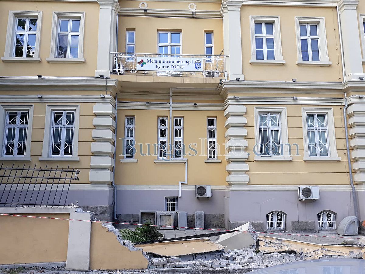 Оградата на Медицински център 1, известен като Втора поликлиника в Бургас, се срути преди броени минути на плочките откъм оживения булевард „Иван Вазов”. Сградата е една от старите в центъра на Бургас и жителите на морския град я познават като бившия Психодиспансер. В момента на място има две полицейски коли, които са отцепили района, според очевидци причината за инцидента не е самокатастрофирал автомобил, а опит на мургави обитатели на близката градинка, да се катерят по външността на сградата.![]()