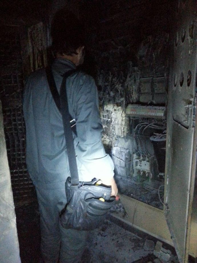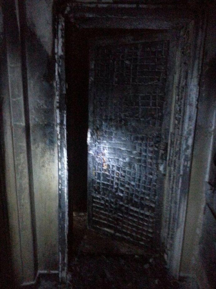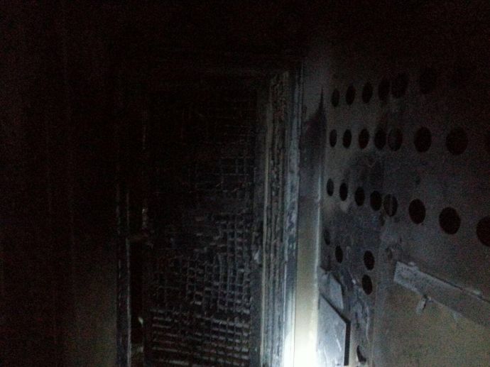 Изгоряло ел. табло, станала на въглен входна врата, сажди и пепел навсякъде. Това е резултатът от палежа пред входната врата на колегата от „Черноморски фар” – фоторепортерът Борислав Пенков. Тази вечер той и съседите му в бл. 1 в бургаския ж.к. „Зорница” изживяха истински ужас, след като около 3:30ч. пред вратата на апартамента му на първия етаж бе оставена подпалена автомобилна гума. Изгоряло е близко разположеното ел. табло с 15 електромера, както и ел. инсталацията на входа. Обгоряла е асансьорна врата на етажа. Както по-рано тази сутрин съобщихме, семейства с малки деца напуснаха жилищата си посред нощ, заради задушливата миризма, а на възрастна жена беше оказана медицинска помощ.![]()