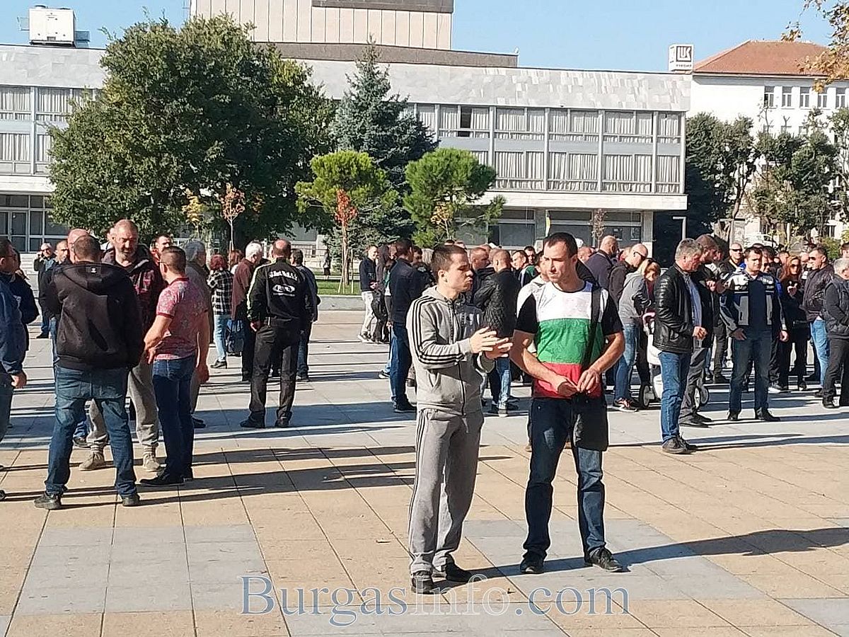 На площада пред Съдебната палата има над 150-200 бургазлии, представители на неправителствени организации, мотоклубове от града др., които застават зад българските гранични полицаи.