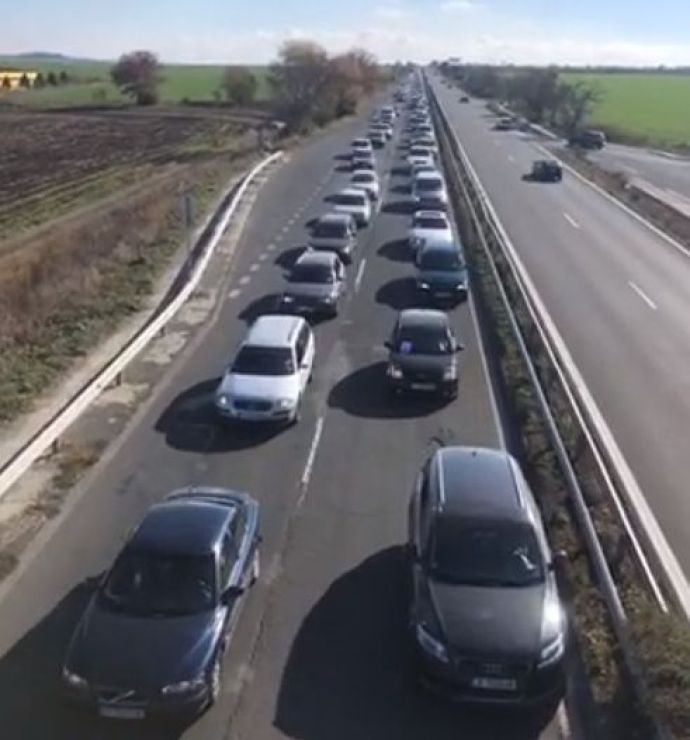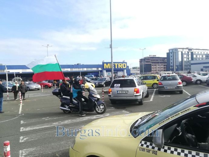 Над 450 коли и мотори тръгнаха на протестно шествие от паркинга на магазин „Метро” към кв. Ветрен. Първоначалните намерения на организаторите са да не затварят движението на изхода на магистрала „Тракия” в посока Бургас., но колите пъплят с 5 км./ч и трафикът на практика е спрян. Очакванията са колоната автомобили да обърне на надлеза край магазин „Джъмбо” и по ул. „Крайезерна” да се отправи към „Трапезица”. Оттам шествието ще се насочи отново към паркинга на „Метро”.