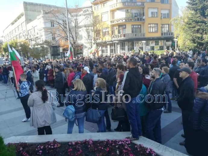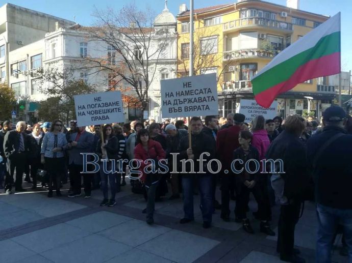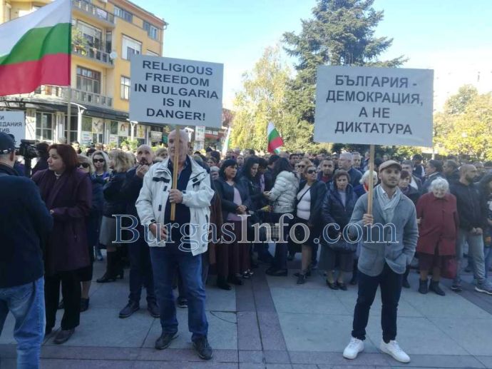„Новият законопроект връща комунизма!”, „България – демокрация, а не дикатура” и „Не погазвайте човешките права”, бяха част от лозунгите, издигнати на площада пред сградата на Община Бургас.