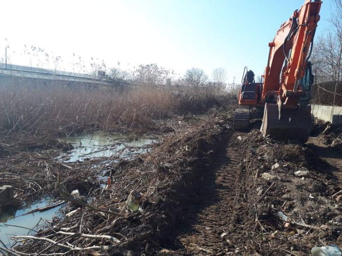 Сред тръстиките, тинята и папура работници на почистващата фирма се натъкват на неприятна находка - нерегламентирано сметище, включващо пълно разнообразие на отпадъци от бита – консерви, кутии от бои и масла, гуми, тенекии от сирене и др.