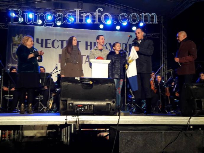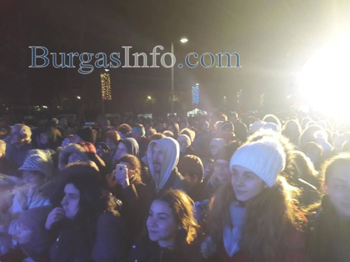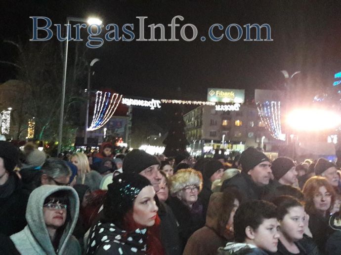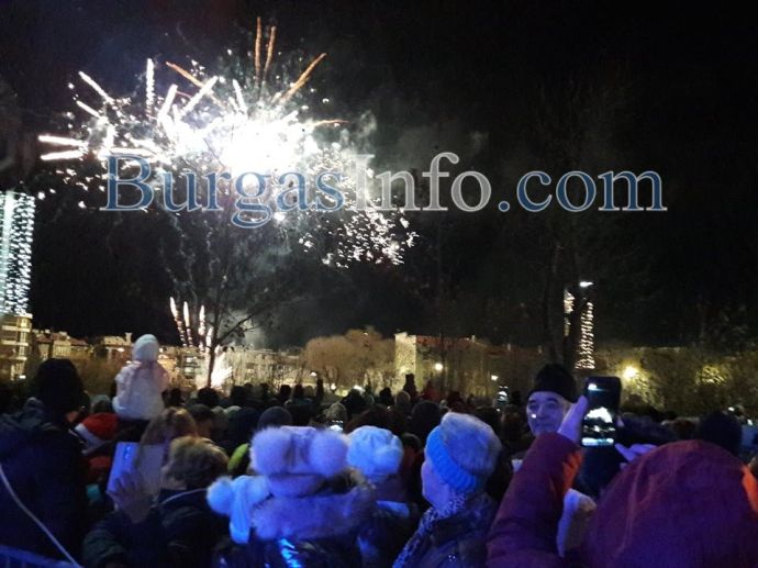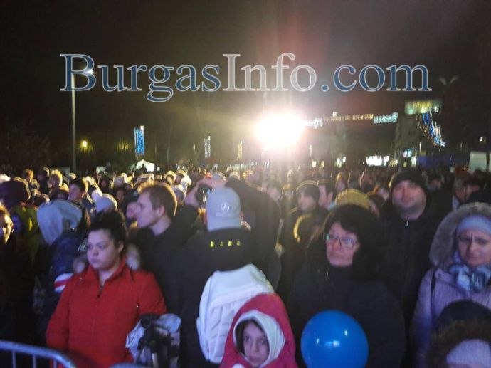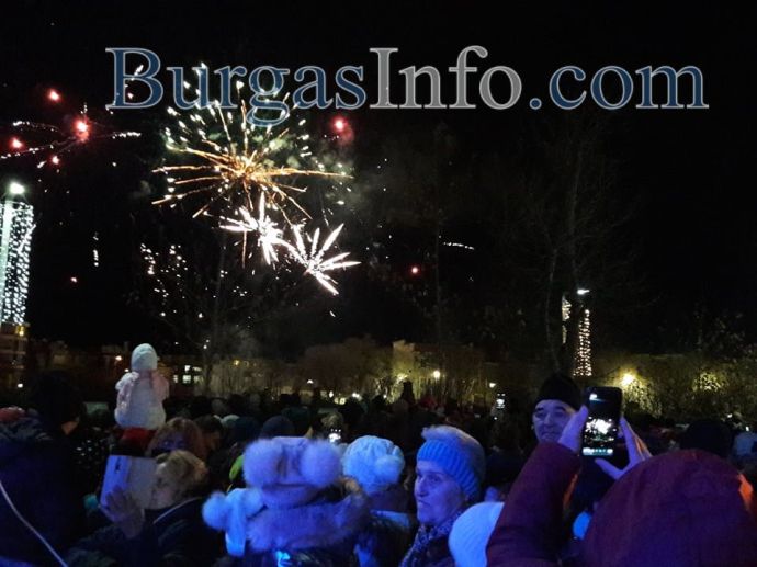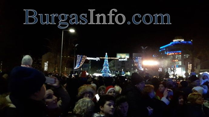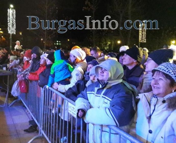 Истинска еуфория обзе площад „Тройката“ в центъра на Бургас, където бургазлии празнуват заедно празника на града – Никулден. Преди минути на площада светна Коледната елха, чиито светлини бяха запалени от кмета Димитър Николов и изявили се със своите успехи бургазлии през годината – шампионите по акробатика Мариела Костадинова и Панайот Димитров, световната шампионка от ансамбъла по художествена гимнастика Стефани Кирякова.