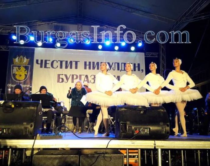 На площада продължава празничният Никулденски концерт с участието на Орлин Павлов, „Фортисимо“, P I F, ансамбъл "Странджа" , хор "Родна песен", балетна формация и тромпетен ансамбъл при НУМСИ "Проф. Панчо Владигеров"-Бургас.![]()