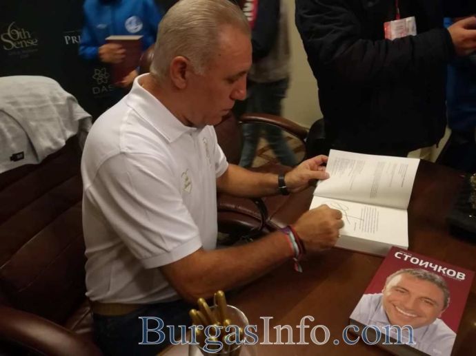 Хиляди фенове окупираха „Гранд хотел Приморец” в Бургас, за да видят на живо легендата на българския футбол Христо Стоичков. Той е в морския град за представянето на книгата си „Историята”. Провържениците му са готови да чакат часове наред, за да получат автограф от звездата. Организацията е направена така, че да не се допуска суматоха. В първите редици за мечтания подпис са децата от футболните клубове в Бургас. Сред известните личности, които бяха забелязани с книга в ръка, са любимката на бургаската публика Тони Димитрова, футболният бос Христо Порточанов, който доведе внучките си, както и треньорът Димитър Димитров – Херо, много настоящи и бивши футболисти.