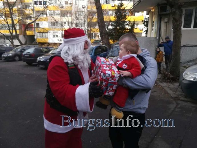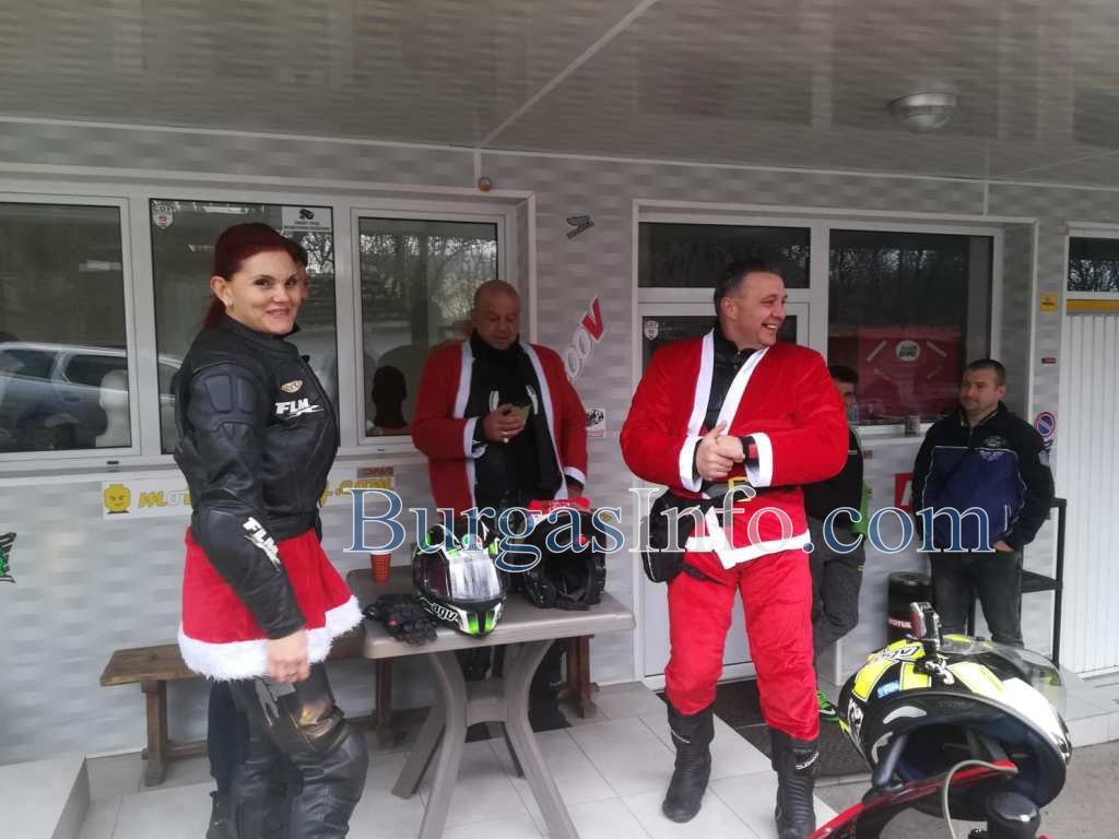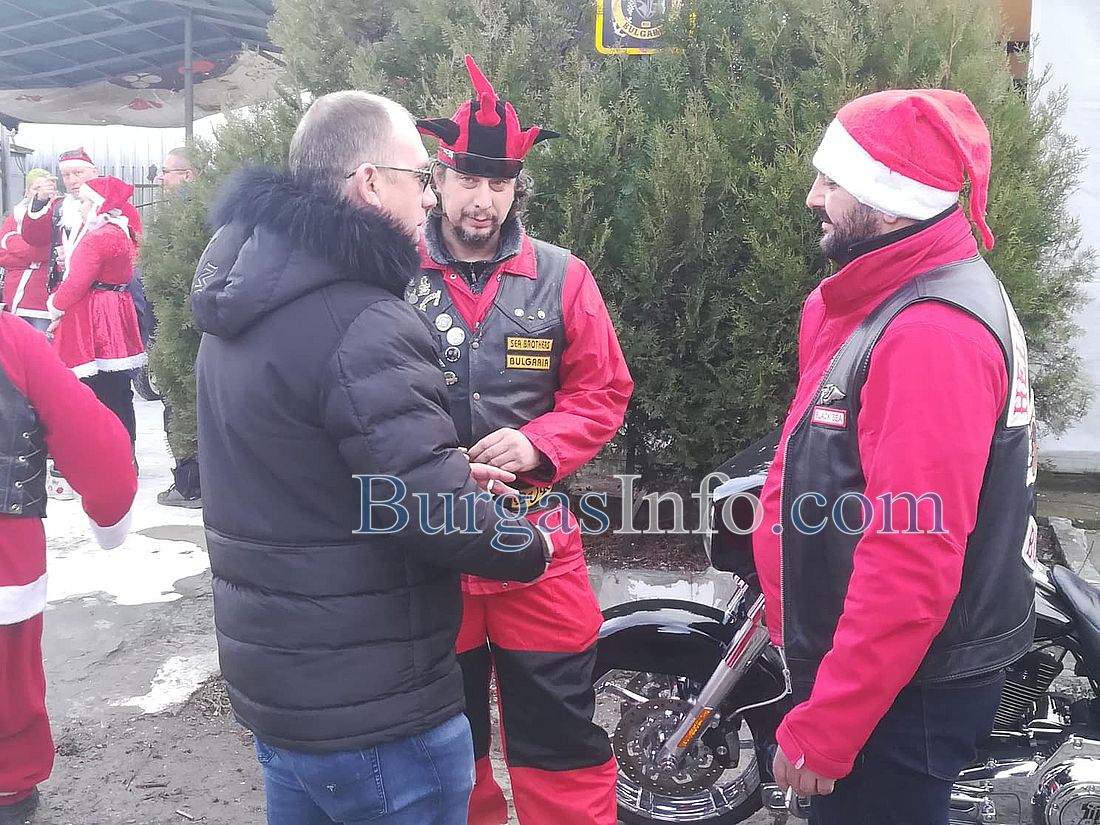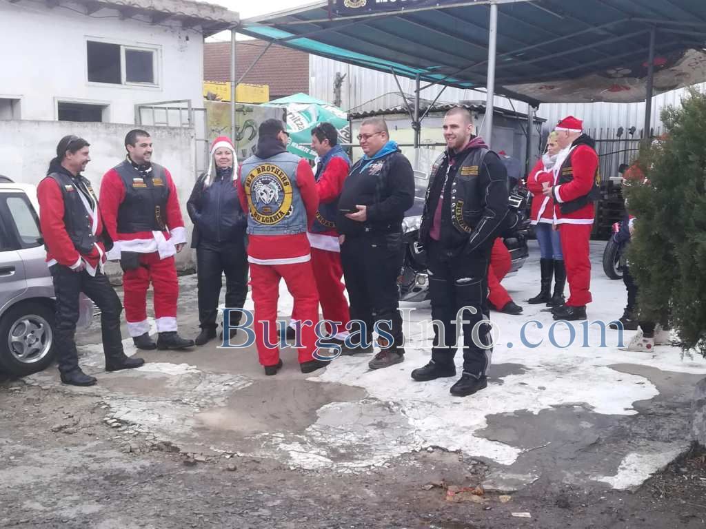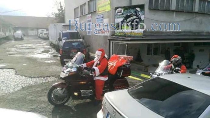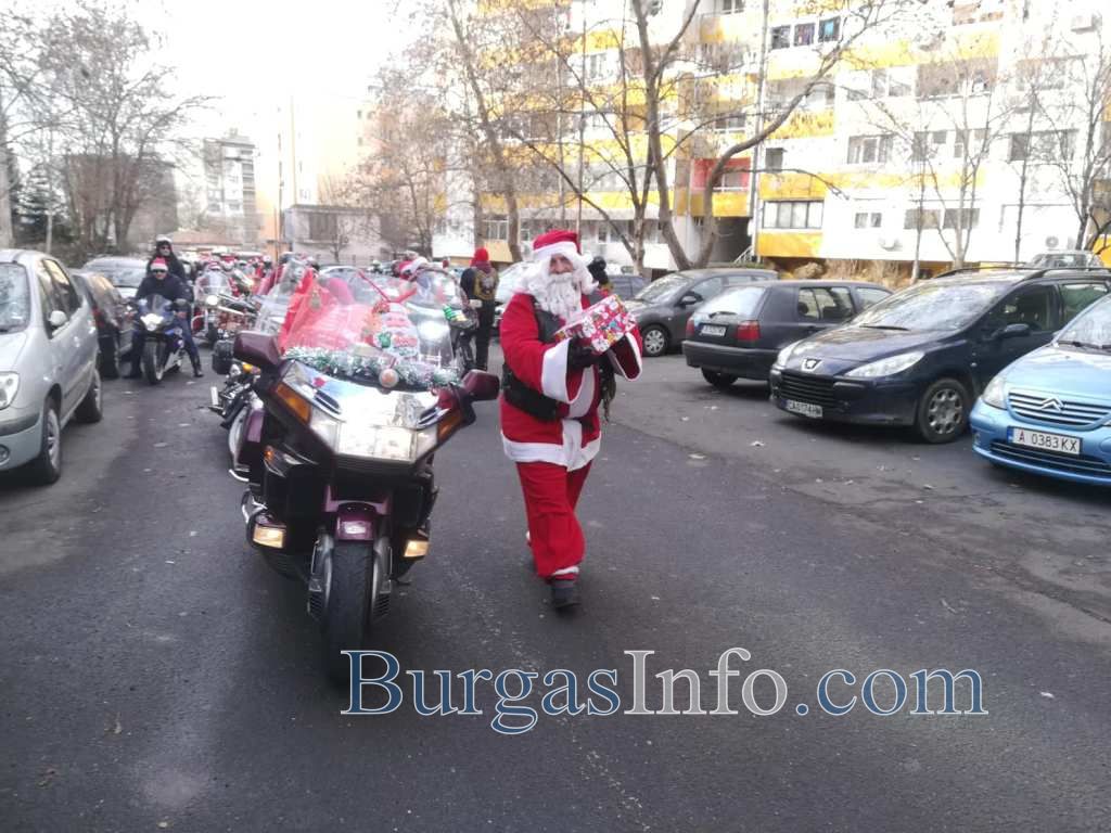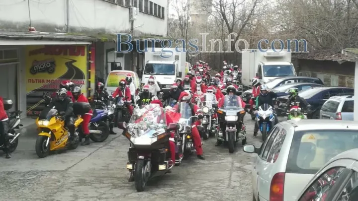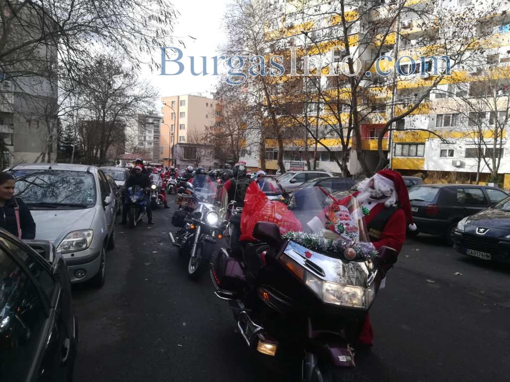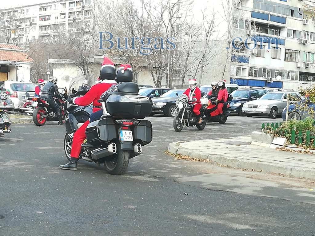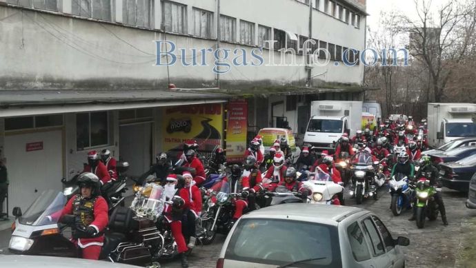 Колоната от мотори тръгна от складовата зона край „Трапезица” в Бургас и се оптрави към първия си адрес в ж.к. „Славейков”. Съставен е списък от адреси, на които децата ще получат малки подаръци. Очаква се към 13 часа Дядо Коледа и джуджетата му на мотори да се съберат под елхата в центъра на града.![]()