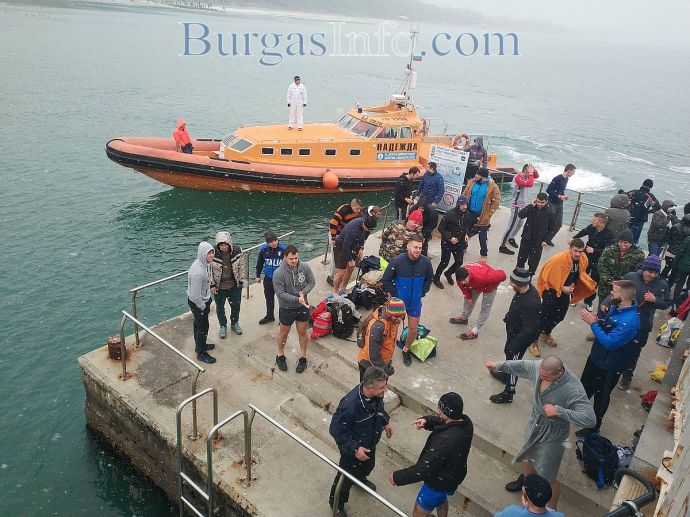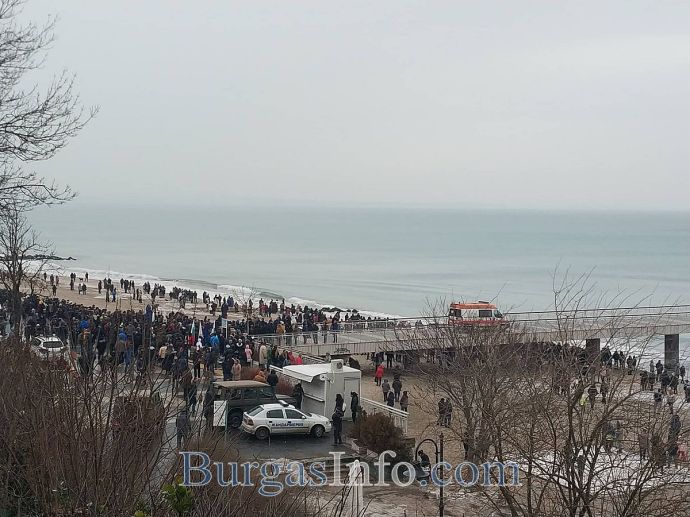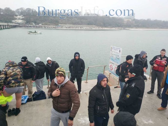 Хиляди бургазлии се събраха около Моста в Бургас, за да наблюдават спасяването на кръста, който след минути ще бъде хвърлен в ледените води от дядо Йоаникий. За него ще се надпреварват 39 смелчаци. Най-младият от тях е на 16 години, а най-възрастният на 66. Сред участниците тази година има и чужденци - двама американци и един украинец. Кой от тях ще успее да хване разпятието пръв, очаквайте в БургасИНФО. "Скачам за първа година, правя го за здраве", каза 16-годишният ученик Иван Киров. Момчето е от "Меден рудник" и след секунди ще се кадпреварва с другите 38 участници за спасяване на кръста.![]()