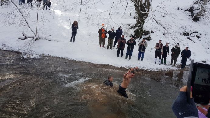 19 - годишният Кристиян Станков от Бургас спаси кръста в ледените води на водопада Докузак в община Малко Търново. Кристиян, който много пъти е прославял морски град със златните си медали от големи състезания по карате, скочи във водите на Докузак заедно с Пламен Воденичаров.