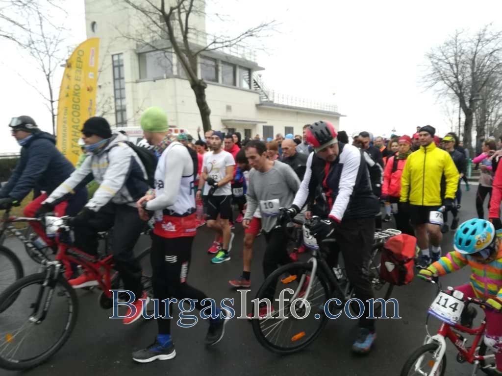 145 души избраха бягането и колоезденето тази неделя, когато беше даден стартът на полумаратон „Атанасовско езеро”. Участниците тръгнаха от алеята пред Културен център „Морско казино” в 10:30 часа. Сред любителите на спорта бяха не само бургазлии, но и хора от цялата страна, както и чужденци, дошли от Германия и Турция. Цели семейства застанаха на стартовата линия. На преден план с огромен ентусиазъм, с велосипедите си, бяха 9-годишната Мария и 12-годишната Райна.