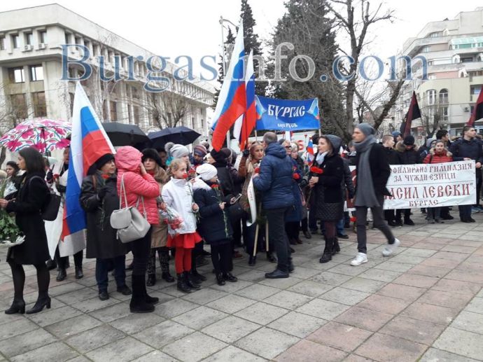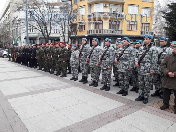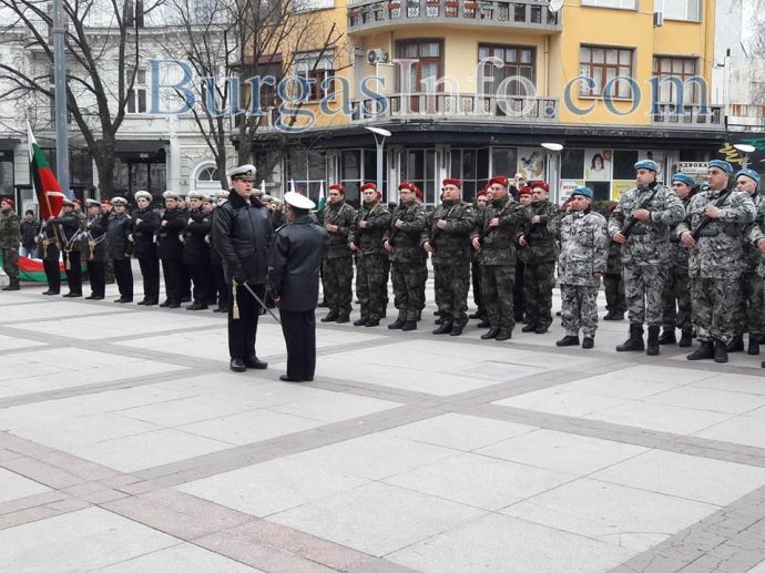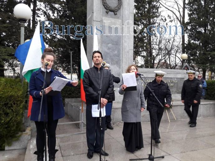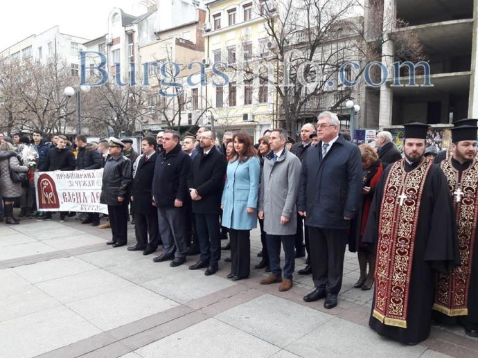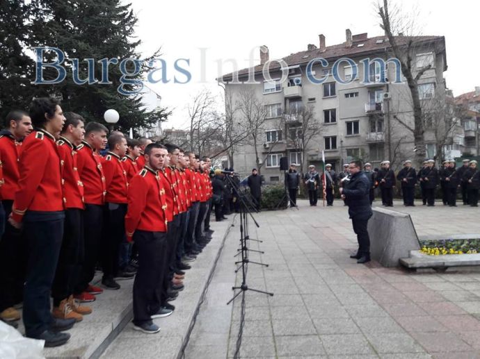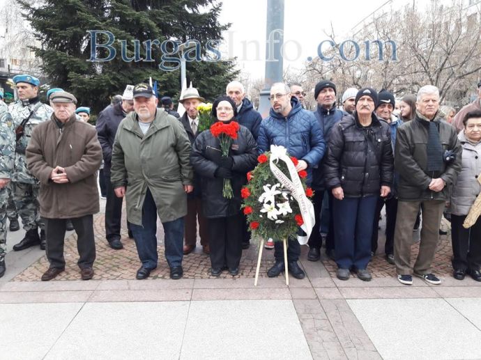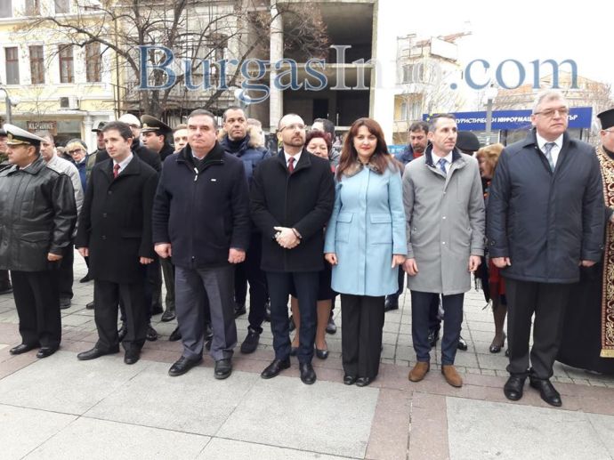 Честването на паметната дата в съвременната история на Бургас започна в 11 часа днес на площад "Атанас Сиреков" с тържествен военен ритуал по издигане на националния флаг на Република България и флаговете на Европейския съюз и Общината. Молебен за просперитета на Бургас отслужи бургаското православно духовенство.