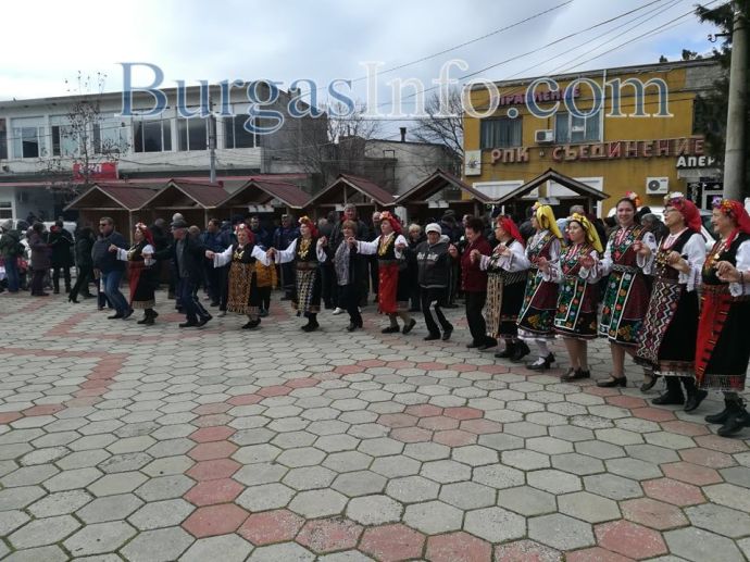 Десетки местни жители извиха хоро в центъра на града, водено от кмета Жельо Вардунски.