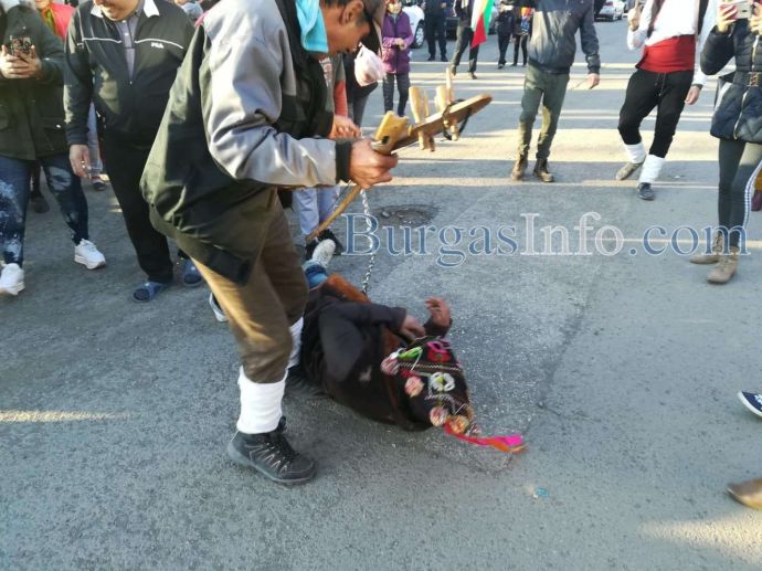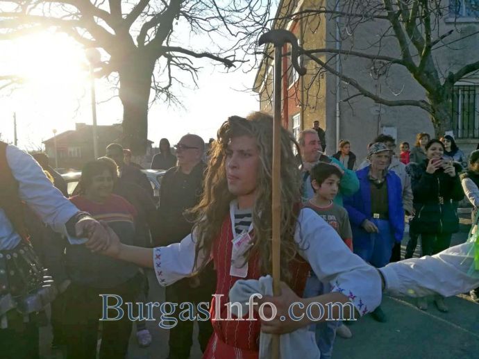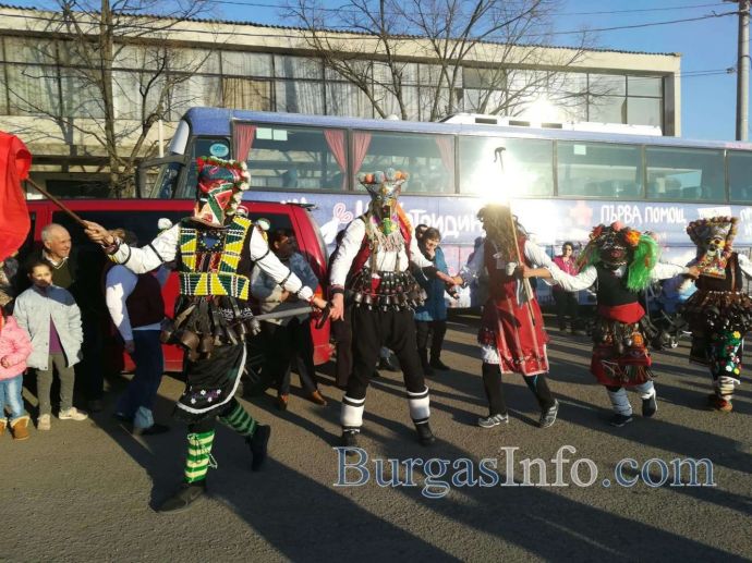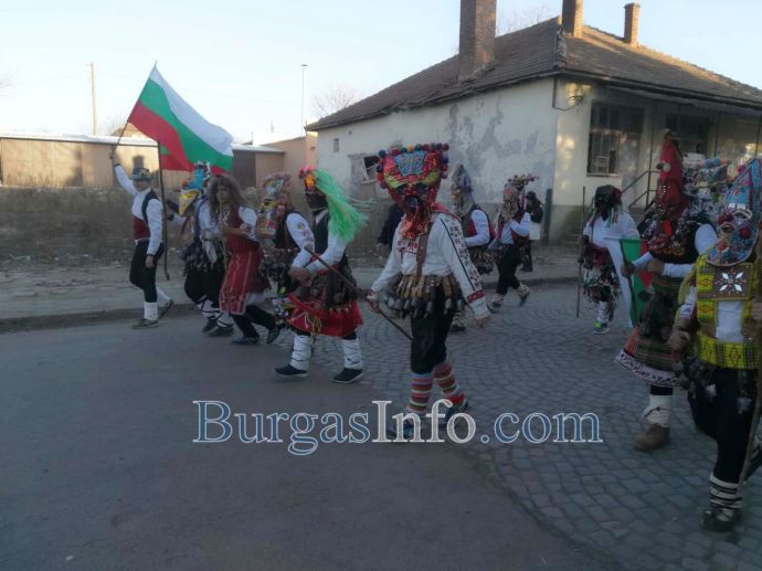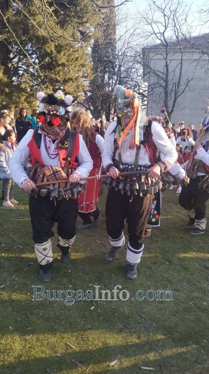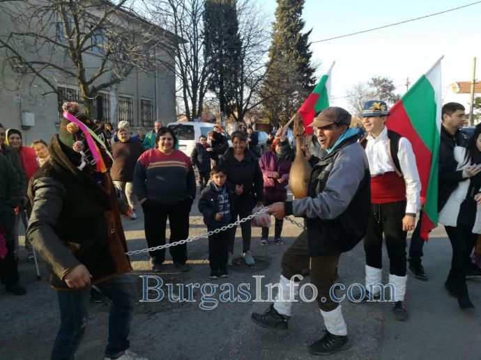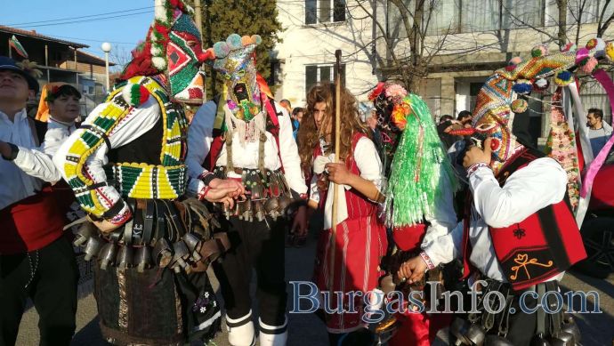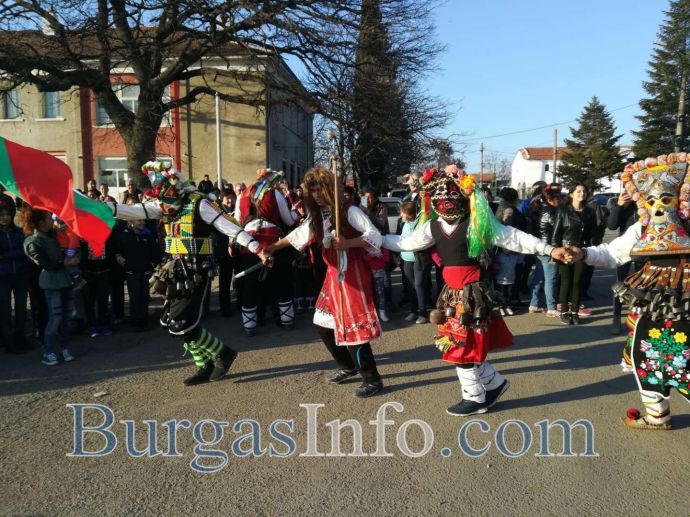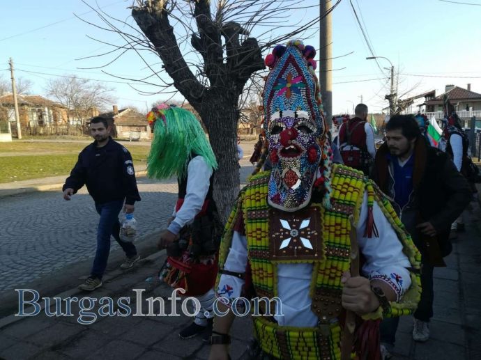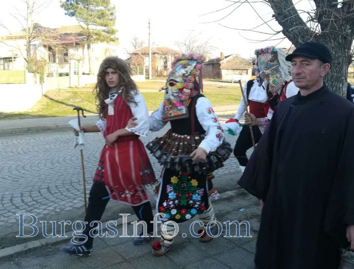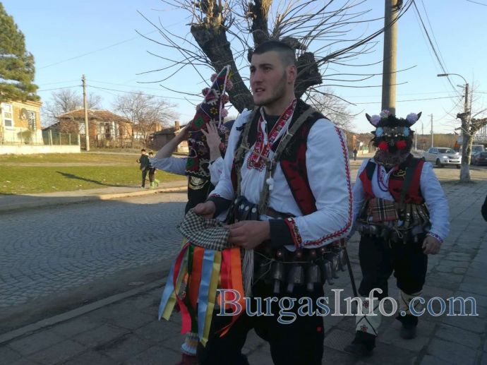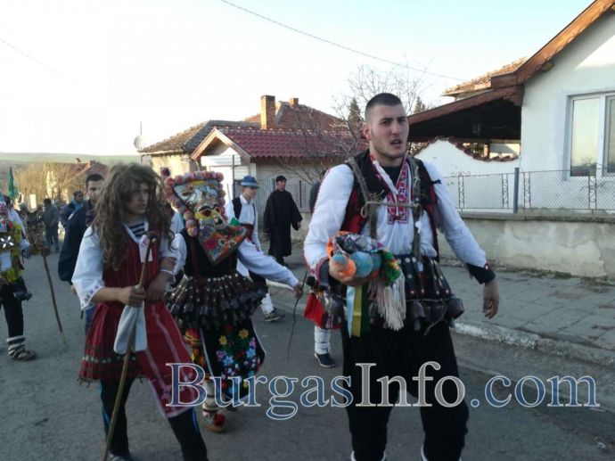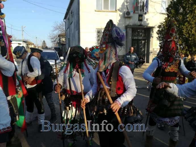 В момента кукерите изпълняват обичая „Заораване“ в центъра на населеното място.